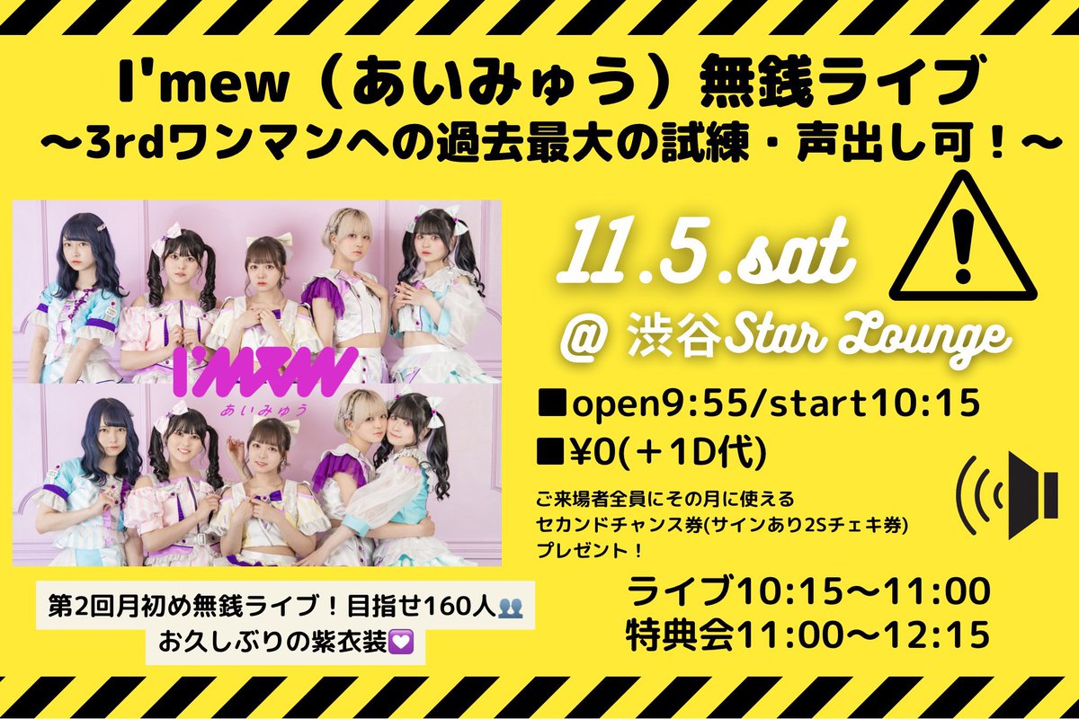 月初め無銭ライブ「I’mew(あいみゅう)無銭ライブ〜3rdワンマンへの過去最大の試練・声出し可!〜」